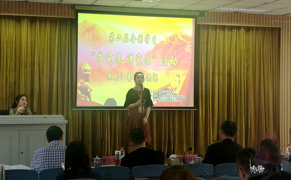 本网讯(特约记者 付国印 何振东)9月25日至26日,由黑龙江省教育厅主办的第二届全国学生“学宪法 讲宪法”黑龙江赛区总决赛落下帷幕,我校文化旅游学院2016级法学专业余双双同学在29所高校选送的43名选手中脱颖而出,以总成绩第三的优异成绩荣获个人二等奖。