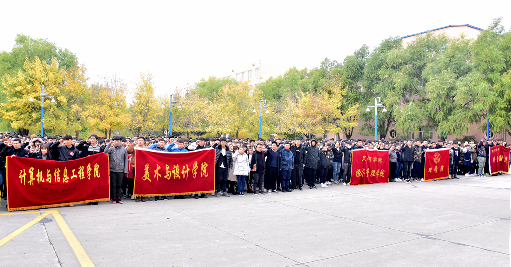 四名学生齐颂人文传媒学院朱红岩老师为第四个烈士纪念日而创作的诗歌《永不褪色的信仰》,3000名学生在国旗下宣誓:牢记祖国赋予的使命,继承革命先烈的遗志,承载父母寄予的希望,铭记恩师赐予的教诲,努力学习,勇担责任,做有志青年。