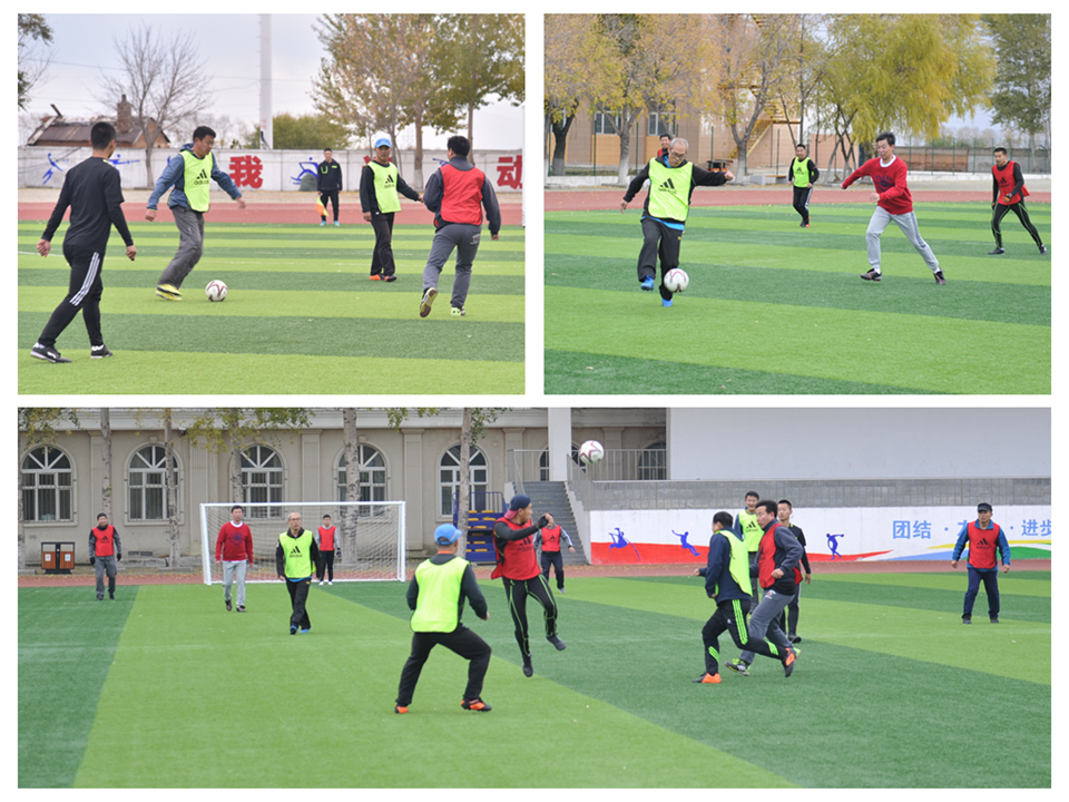 13日中午,教职工足球赛在学校田径运动场拉开帷幕。参加本次比赛的体育学院教师代表队及教职工联队的全部球员均是45岁以上教职员工,其中年龄最大的58岁。队员们在绿茵场上纷纷拿出看家本领,球技和体力并不比年轻人逊色,运球、传球、防守、进攻……队员们配合默契,你追我赶,全力拼搏,球场上双方攻势此起彼伏。最终,双方以2比2的比分战成平手。