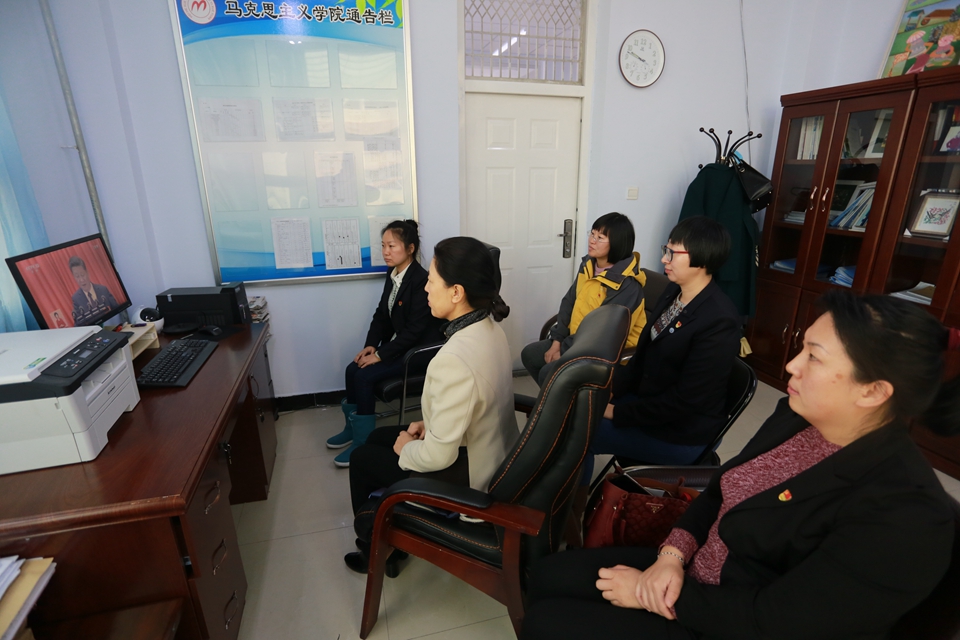 本网讯(记者 张巍 赵宇)新时代催生新理论,新理论引领新实践。习近平总书记在党的十九大报告中指出“新时代中国特色社会主义思想是全党全国人民为实现中华民族伟大复兴而奋斗的行动指南”。这一论断犹如春雷,振奋人心,催人奋进。学校马克思主义学院的教师们在第一时间收听收看十九大报告开幕会,召开集体备课会,让思政理论课教师先学一步、学深一步,推进十九大精神进教材、进课堂、进头脑,吹响坚决打赢提升思想政治理论课教学质量攻坚战的冲锋号。