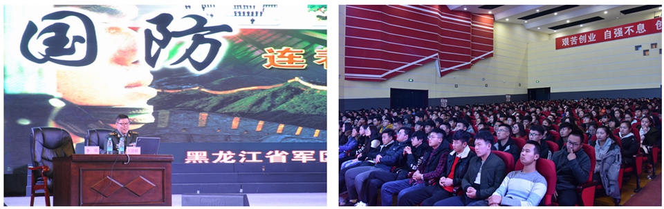 本网讯(特约记者 梁策 摄影 魏辉辉)11月12日下午,学校特邀黑龙江省军区学生军训教研室主任王欣研中校在明德楼礼堂为800余名学生作题为“国防连着你我他”的国防教育讲座。学生工作部(学生处)·武装部部长李明主持讲座。