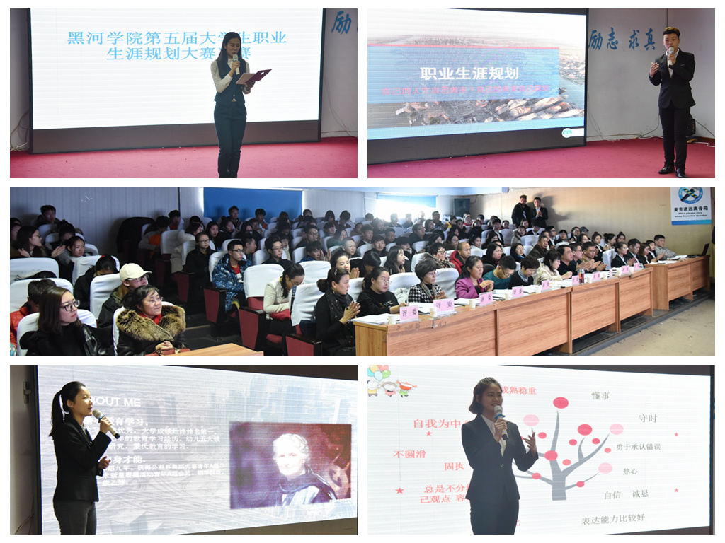 本网讯(特约记者 李绥化 摄影 魏辉辉 张陈)11月24日下午,由招生就业处、校团委主办的“黑河学院第五届大学生职业生涯规划设计大赛”决赛在润德楼小礼堂举行。党委副书记杨宏,各学院党总支书记、副书记、辅导员及近百名学生共同观摩了本次比赛。