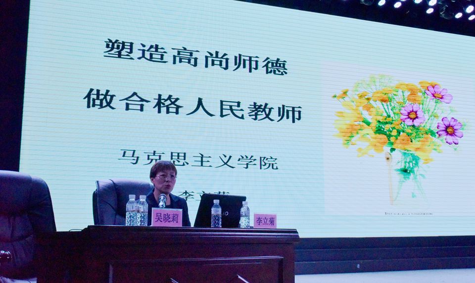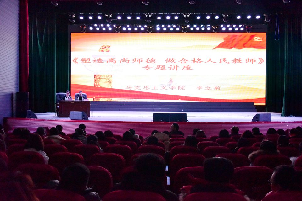 本网讯(特约记者 王佳)为加强师德师风建设,培育高素质教师队伍,11月29日下午,学校在明德楼礼堂举办师德师风专题培训,特邀马克思主义学院李立菊教授为300余名专任教师作题为《塑造高尚师德做合格人民教师》的专题讲座。