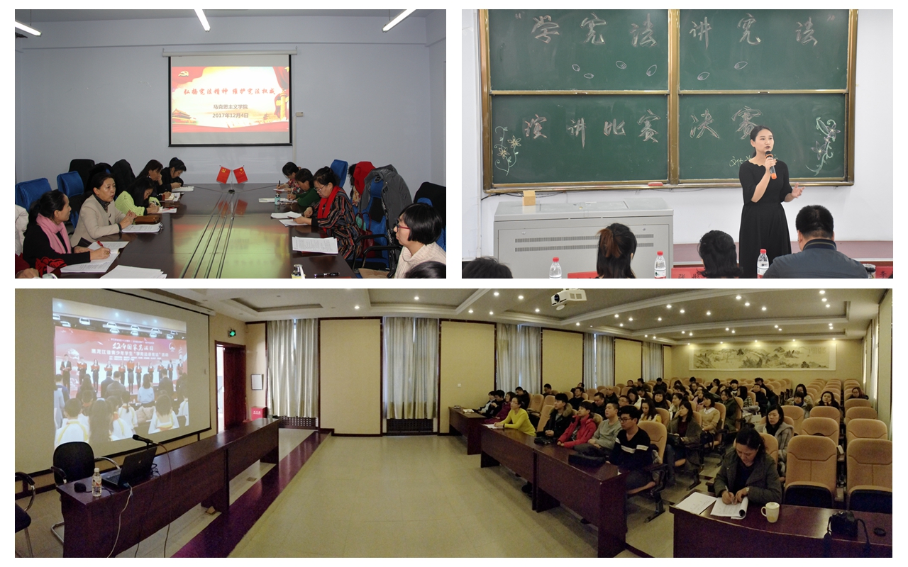宪法宣传日当天,美术与设计学院组织教师收看黑龙江省“学宪法 讲宪法”活动网络直播,普及宪法知识;马克思主义学院开展“学习贯彻十九大精神 弘扬宪法精神”教研活动,探讨法治教育以演讲、讨论、案例、实践等形式融入思政课教学的新方法;文化旅游学院开展“12·4”宪法宣誓、“学宪法 讲宪法”主题演讲比赛和模拟法庭专业实践活动,将法治教育与专业实践结合,进一步提升学生法律修养和专业素质。