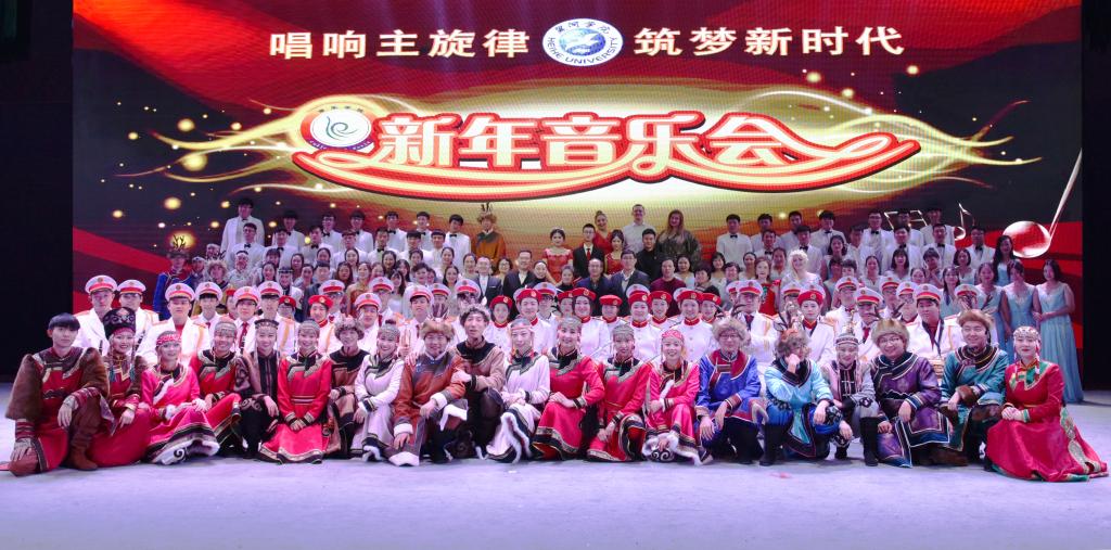 伴随着民乐合奏《好日子》《北京喜讯到边寨》,新年音乐会拉开帷幕,优美的旋律和轻快的节奏,将人们对幸福生活的热爱之情表现的淋漓尽致;歌曲《祖国我的最爱》《江山》《看山看水看中国》唱出了祖国盛景的气势恢宏,唱出了千千万万人民的爱国情思;京剧《红灯记》选段《都有一颗红亮的心》《穷人的孩子早当家》带现场观众领略中国传统文化国粹的魅力;古筝四重奏《茉莉花》、竹笛重奏《草原英雄小姐妹》将欢乐与喜庆的气氛充满了整个礼堂;俄罗斯籍教师拉米娜编排的舞蹈《俄国村庄》,傣族舞蹈《版纳印象》赢得了在场师生阵阵掌声和欢呼声;《鄂伦春族婚俗幽默歌》再现了鄂伦春族举行婚礼时的热闹场面;俄罗斯师生带来的歌曲《冰雪奇缘》《飞舞》将整场音乐会推向高潮;在音乐学院西洋管乐团的伴奏下,合唱团献上《歌唱祖国》《没有共产党就没有新中国》,歌声嘹亮、旋律悠扬,奏响了中华民族伟大复兴的乐章,为本次新年音乐会画上了圆满的句号。