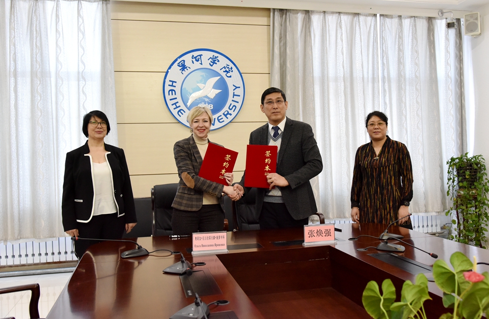 19日上午,双方签订了《黑河学院与俄罗斯南乌拉尔国立大学建立双向互派学生和进修生项目合作关系协议书》和《黑河学院与俄罗斯南乌拉尔国立大学共建普希金学院俄语中心协议书》。依据协议,双方将在人才培养、师资培训、学术交流、学生活动、远程教育培训等诸多领域开展合作。
