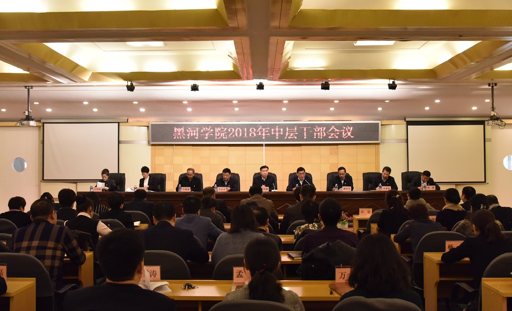 校长贯昌福对2017年学校整体工作进行了总结。他指出,过去的一年,学校在省委、省政府和省委高校工委、省教育厅的正确领导下,持续改善教风学风,创新应用型人才培养模式,加强教学质量监控,教育教学质量不断提高;成功获批新增硕士学位授权立项建设单位,建立多个国家级科研平台,与黑河市政府签署战略合作协议,科研实力持续提升;实施“人才强校”战略,抓好人才引进、培养、使用、激励和服务等各环节工作,师资队伍建设成效显著;主动融入“一带一路”建设,不断扩大国际化办学道路,中俄文化交流活动广泛开展,国际交流合作不断深入;加强大学生思想政治教育,完善就业创业服务体系,学生教育管理全面加强;坚持勤俭办学,切实提高资金使用效益,服务保障能力日益增强;校园整体规划修编完成,环境综合治理成效显著,办学条件持续改善,育人环境日趋优化;进一步完善民主决策、科学决策、依法决策机制,加强“三重一大”管理和监督,依法治校工作深入开展;健全突发事件应急管理机制,教职工福利待遇稳步提高,校友会正式成立,和谐校园建设稳步推进。