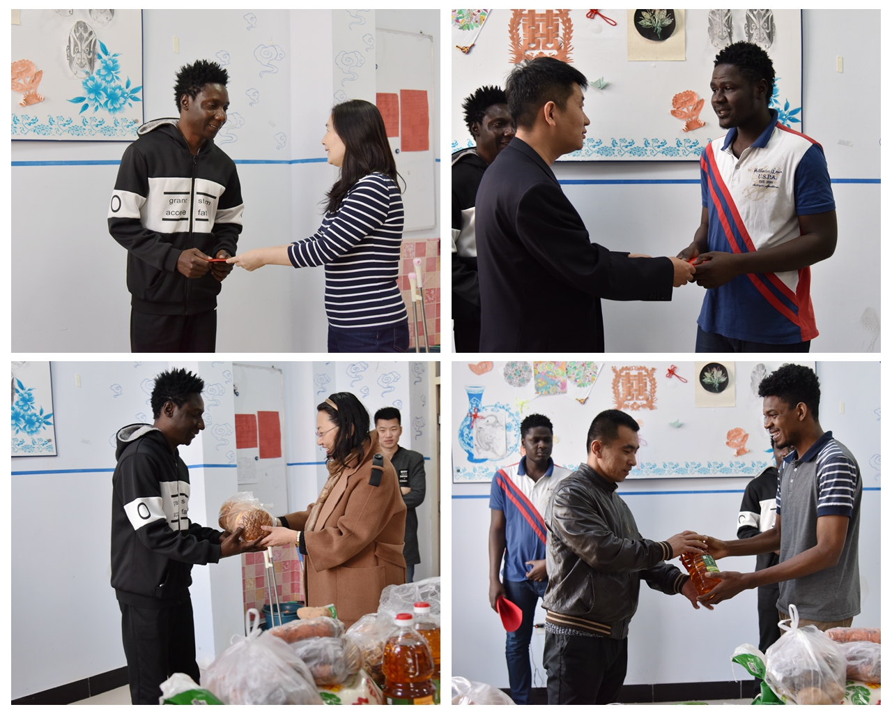 乍得留学生马飞、马丹纯、王爱名是我校国际经济与贸易专业的黑龙江省政府奖学金生。2017年9月,他们离开家乡不远万里来到我校国际教育学院进行汉语学习。在半年的学习中,他们爱上了黑河这片和平安定的土地,爱上了亲如一家的校园,并下定决心要在这里努力学习,提高汉语水平。近日,非洲乍得国家政治局势动荡、经济萧条,导致三名留学生家中没有任何经济来源,生活窘迫,无法再继续为他们提供在中国留学的生活费用。而三名留学生仅有的生活费也已经花完,身无分文,这一情况被国际教育学院的老师们知晓后,他们迅速在微信朋友圈中发出《请帮助我们的三个非洲留学生》的爱心呼吁,学校领导、师生们纷纷响应,全力支持,短短18小时内,便筹得善款四千多元。此外,国际教育学院相关负责人还迅速与黑河市义工协会取得联系,谋求社会力量来帮助三名留学生;学校学生工作部积极为三名留学生提供勤工助学岗位,建立长期帮扶关系,为留学生们就学解困助力。