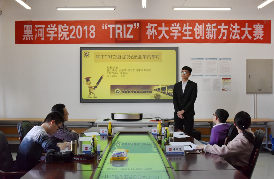 本网讯(学生记者 张子腾 摄影 郑秋郁)3月23日,由我校科研处、团委、黑龙江省TRIZ理论研究所联合举办的2018“TRIZ”杯大学生创新方法大赛在我校探知楼A614举行。便携式红外激光气体教鞭、汽车车窗防夹安全装置、垃圾小窝等作品逐一呈现在观众面前,精巧的构思、缜密的设计方案无不展现着各位参赛选手的才华,让观众赞不绝口。