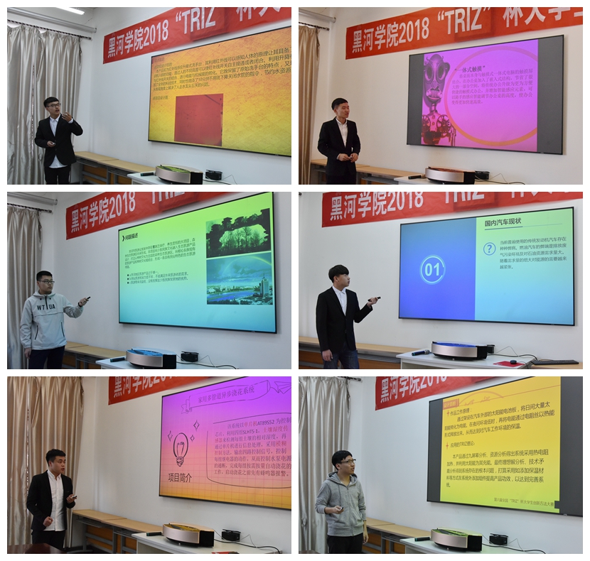 本次大赛共收到来自全校280名学生、71个参赛团队的71件作品。经过评委初评和复评,共有31件优秀作品入围决赛,参赛选手通过现场PPT演示及限时答辩进行展示,黑龙江省TRIZ理论研究所、理学院、计算机与信息工程学院的TRIZ创新创业课程任课教师依据评审标准,从TRIZ理论应用情况、创新点和原创性、实用性、市场推广价值、答辩表现等方面进行现场评审,并对答辩中存在的问题进行现场指导。
