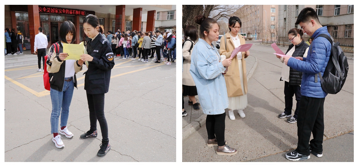 学校在校园网、《黑河学院报》、官方微信、宣传栏等平台中设立国家安全教育专栏,发布全民国家安全教育日的相关知识及学习资料,组织学生线上学习,线下思考,真正做到安全教育入心、安全意识入脑;在校园主要道路、明德楼大厅摆放安全教育展板,在食堂及各学院LED屏幕循环播放宣传标语,在俄语楼门前现场发放安全教育宣传单、播放宣传片,向师生宣传国家安全知识,号召师生积极与一切危害国家安全的行为作斗争。