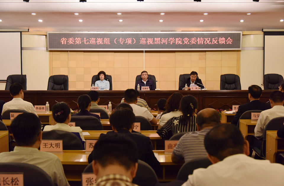 高增奇同志反馈意见时指出巡视黑河学院发现的突出问题:一是学校党委领导核心作用发挥不充分,贯彻落实中央和省委决策部署不到位,执行党委领导下的校长负责制不到位,推动应用型大学转型步伐不快,思想政治教育和意识形态工作不力,巡视整改存在制度整改、文字整改现象;二是党的建设缺失,基层党组织建设弱化、虚化、边缘化,党委履行党的建设主责不到位,基层党组织政治功能和权威弱化,党内生活不够严肃;三是全面从严治党不力,重点领域监管存在盲区,党委履行主体责任意识不强,纪委履行监督职能不充分,重点领域和关键岗位存在廉洁风险,监管漏洞比较多,纠正“四风”不深入,作风整顿成效不明显;四是干部选任、招聘、管理执行规定不够严格。