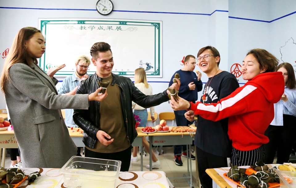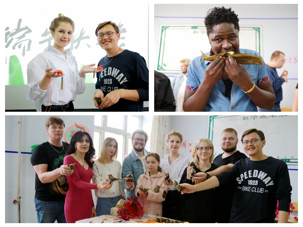 活动中,师生们还互相佩戴香包、编织五彩绳、撞鸡蛋,体验端午文化,既收获了快乐,又加深了对中国传统文化的理解。“学习一门语言除了解文识字,最难的还是对一个国家文化的了解。”国际教育学院党总支书记郑羽介绍说,每逢清明、端午、中秋等中国传统节日,学校都会组织祭扫烈士墓、包粽子、品月饼等活动,这种互动性的体验活动更容易被留学生所接受,他们会把在中国生活的经历和体验带回自己的国家,也让中华文化更多地向海外传播。
