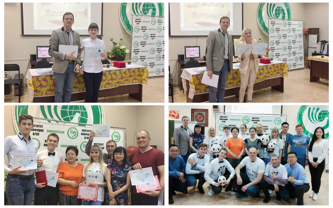 6月16日下午,我校与俄罗斯布拉戈维申斯克国立师范大学共建的孔子学院“2018年度学员毕业典礼”如期举行。仪式上孔子学院俄方院长古哈连科·尼古拉·弗拉基米洛维奇为四年级、商务班15名学员颁发学业证书,孔子学院教学主任古哈连科·谢尔盖·弗拉基米洛维奇为2018年度优秀学员颁发荣誉证书,孔子学院中方院长王晓梅致贺词并为毕业学员赠送了印有孔子学院标志和中国元素符号的体恤衫。