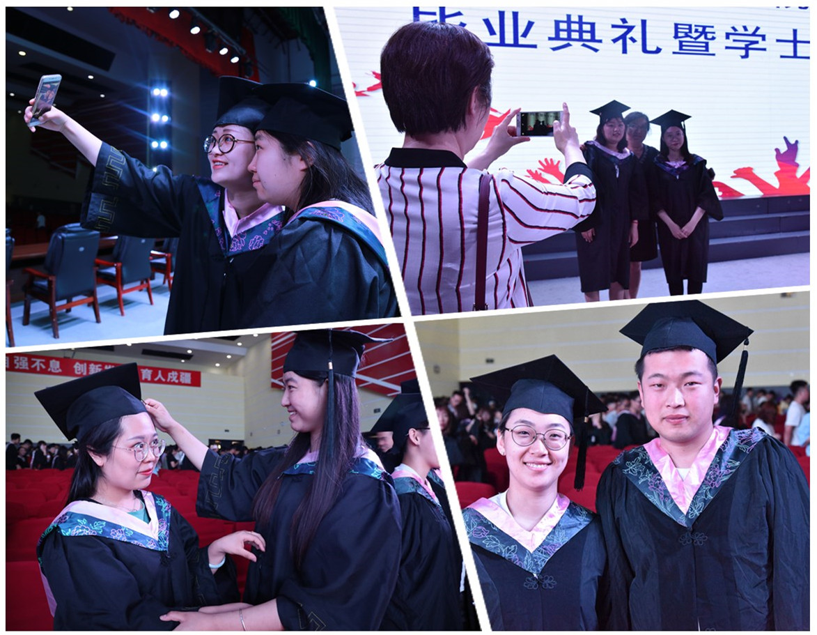 会后,毕业生们纷纷与老师和家长合影留念,记录下这一珍贵而难忘的瞬间。外国语学院毕业生徐恺表示,“用这样的方式与大学四年的青春和母校告别很温馨,很有仪式感、荣誉感,在今后的人生道路上会始终铭记学校和老师们的嘱托,时刻鞭策自己,不忘初心、奋发有为,做爱国、励志、求真、力行的新时代青年”。