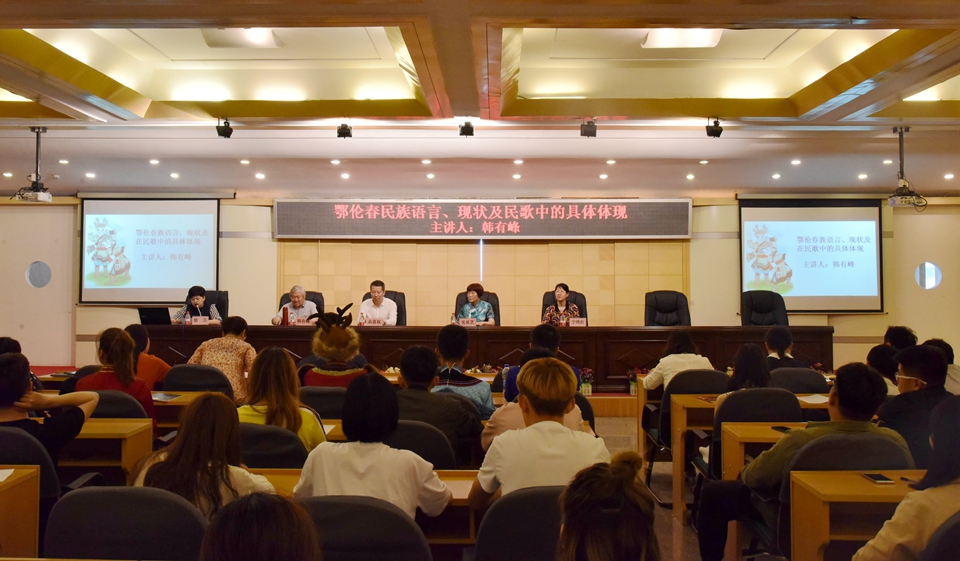 会上,韩有峰研究员结合自身成长经历和从事鄂伦春语言研究的实践,从鄂伦春的语言现状及在民歌中的具体体现等方面进行了全面详细地讲解,指出了鄂伦春民族语言抢救和保护面临的问题,并对鄂伦春语的保护和发展提出了自己的建议和设想。