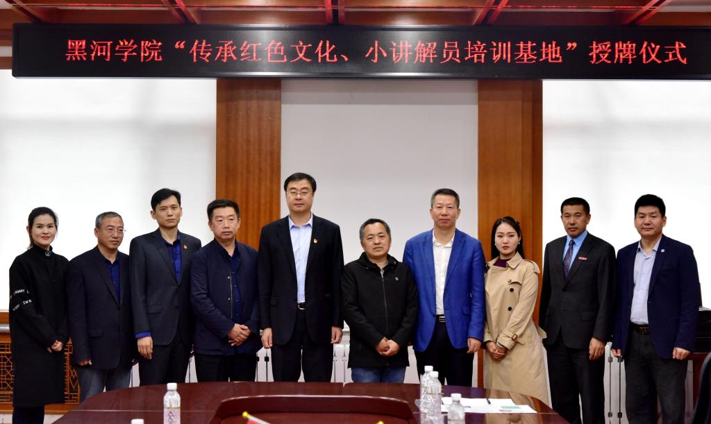 传承红色基因,弘扬革命精神。9月12日上午,我校中苏抗战历史纪念馆与黑河市第五小学、幸福中学共建的“传承红色文化 小讲解员培训基地”在明德楼二楼会议室举行授牌仪式。黑河市第五小学校长马书彬、幸福中学副校长朱作良,我校党委书记王刚、副校长丛喜权及远东研究院、团委、学生工作部相关部门负责人参加授牌仪式。