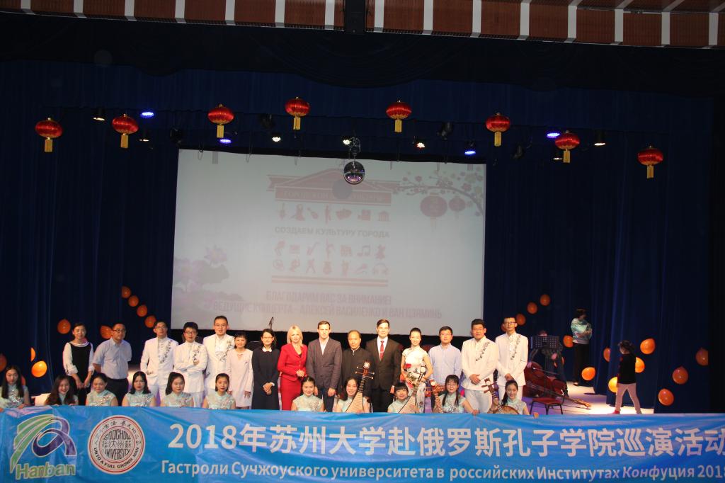 苏州大学东吴艺术团巡演活动是孔子学院系列活动之一,中国文化艺术走进俄罗斯,向人们展示独特魅力的中国传统文化和高雅清丽的享受,在当地爱好艺术的人群中产生共鸣,赢得广泛赞誉。