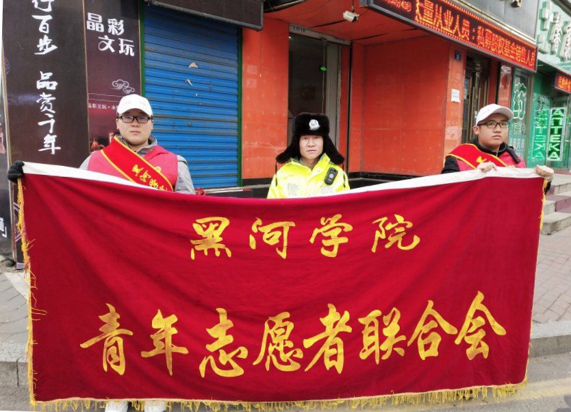 志愿者们身着红色马甲,统一佩戴“黑河学院青年志愿者”绶带,手执引导旗,在早、中、晚高峰期来到指定道路交通路口,辅助交通警察指挥疏导行人安全过马路,劝阻、纠正行人和非机动车驾驶员的不文明交通违法行为,扶老携幼安全通行。