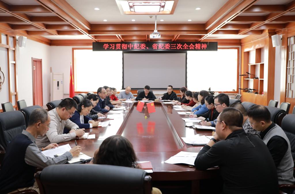 纪检监察处副处长张雪梅全文传达了第十九届中纪委三次全会会议公报。纪委副书记姜占民传达了习近平总书记在第十九届中纪委三次全会上的重要讲话精神。纪委书记董贵杰传达了省十二届纪委三次全会精神,重点解读了王常松同志在三次全会上作的工作报告。