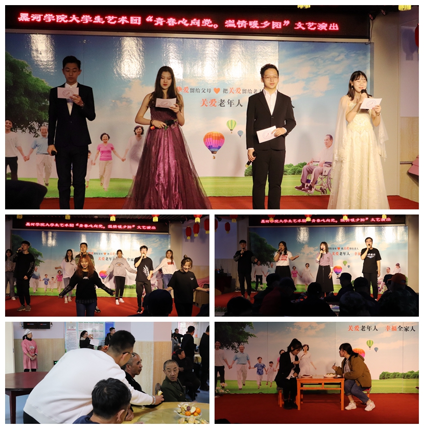 本网讯(学生记者 田刚 李梦琪 曹贺迪)为践行雷锋精神,弘扬中华民族尊老、爱老、敬老传统美德,3月24日上午,校大学生艺术团成员来到四嘉子乡的爱辉区中心敬老院,为老人们送去一场充满温情的“青春心向党 温情暖夕阳”慰问演出。