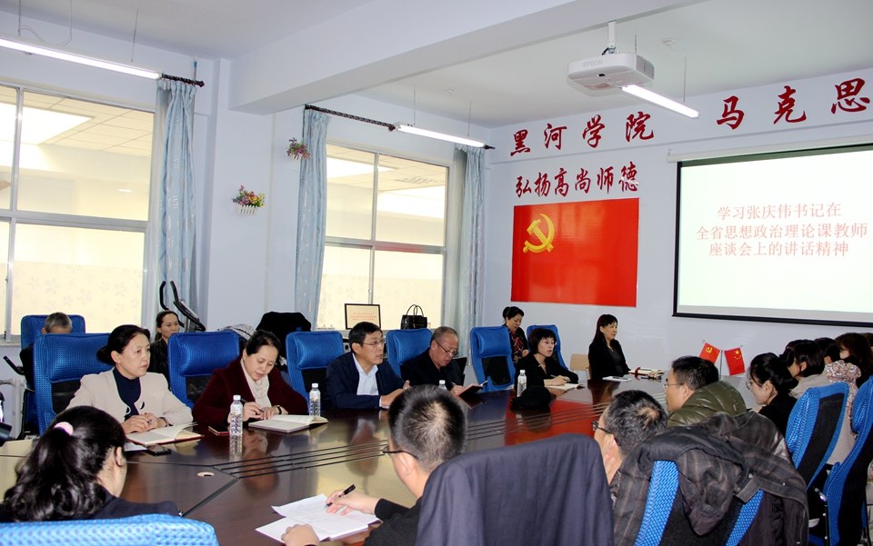 会上,马克思主义学院教师靳晴传达了张庆伟书记讲话精神,并分享了参加全省学校思想政治理论课教师座谈会的感受。马克思主义学院院长姜丽萍详细解读了张庆伟书记讲话精神,就落实庆伟书记讲话,针对马克思主义学院建设和思想政治理论课教学工作作出了具体工作安排,她表示,马克思主义学院将深度挖掘学科专业特色,切实提升教育教学质量,不断丰富教学科研成果,使思政课实现力度、温度、速度相统一,在学生心灵埋下真善美的种子,引导学生扣好人生第一粒扣子。
