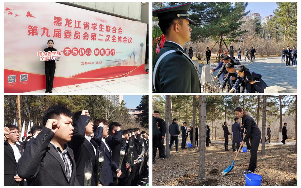 本网讯(记者 赵宇)为激励和引领全省广大青少年大力弘扬以爱国主义为核心的伟大民族精神,矢志投身新时代夺取中国特色社会主义伟大胜利的新征程,4月12日上午,团省委、省学联在哈尔滨烈士陵园组织开展了“青春心向党建功新时代”特别主题团日活动。我校作为主席团团体单位之一,校学生会主席肖尧同学参加会议,并代表省学联全体学员在团旗下作题为《铭记先辈志 青春正当时》的演讲。