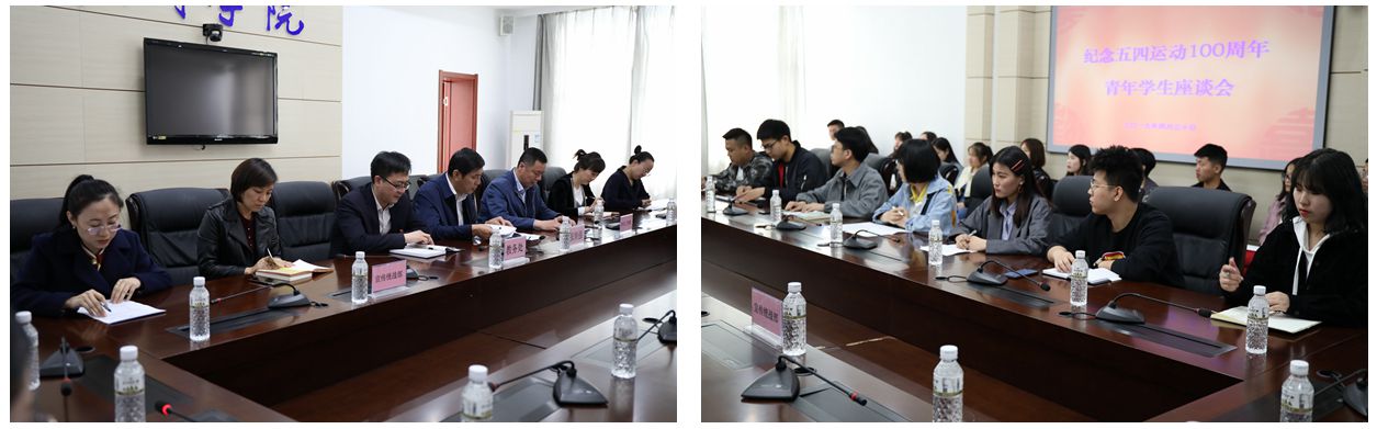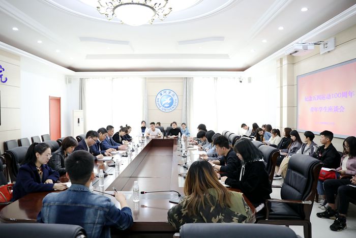 本网讯(学生记者 葛艳宇 摄影 张瑞芹)为深入贯彻落实习近平总书记在纪念五四运动100周年大会上重要讲话精神,传承和发扬五四精神,4月30日,学校在明德楼二楼会议室召开纪念五四运动100周年青年学生座谈会,副校长张焕强,教务处、宣传统战部、学生工作部、校团委相关负责人及各二级学院32名青年学生干部代表齐聚一堂,纪念五四运动,共话时代担当。座谈会由学生工作部部长刘铁刚主持。