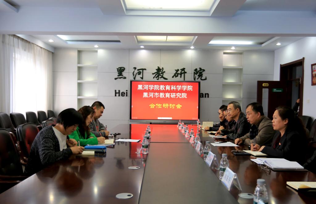 本网讯(特约记者 陈丹)为推进学校与地方教育系统的深度融合、协同发展。5月21日下午,教育科学学院与黑河市教育研究院合作研讨会在黑河市教育研究院会议室召开,教育科学学院院长张玉萍、教师周树海、孙红与黑河市教育研究院院长张兆波、副院长王丽萍及相关科室负责人参加会议。