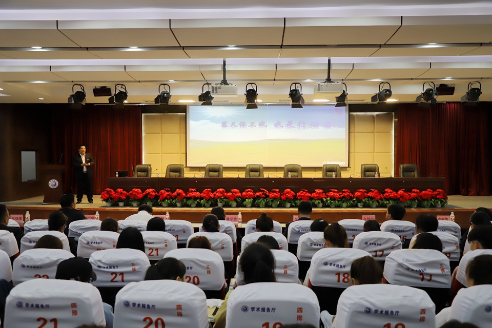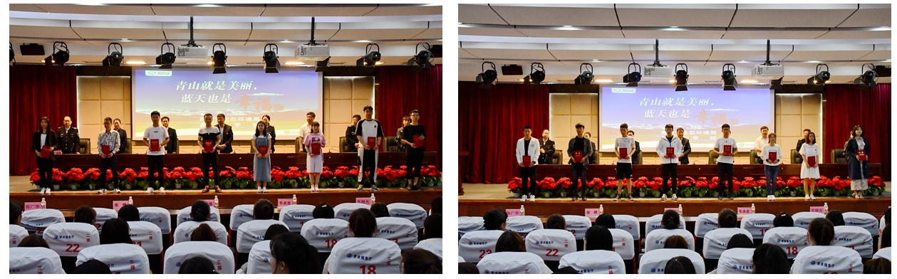 为普及环保法律知识,提升师生环保意识,我校理学院陈利强副教授以“蓝天保卫战,我是行动者”为题,在求知楼报告厅为师生作专题学术报告。与会领导为我校8名师生颁发环保志愿者聘书。