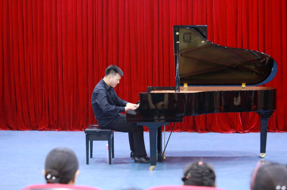 徐牧博士用通俗易懂、深入浅出的语言讲解了贝多芬钢琴奏鸣曲的音乐精髓,并完整地演奏了全部乐章。他希望通过本次音乐会,进一步增进两校音乐教师之间的沟通与交流,促进两校教师专业化的共同成长,推动钢琴教学中人才培养质量的逐步提升。