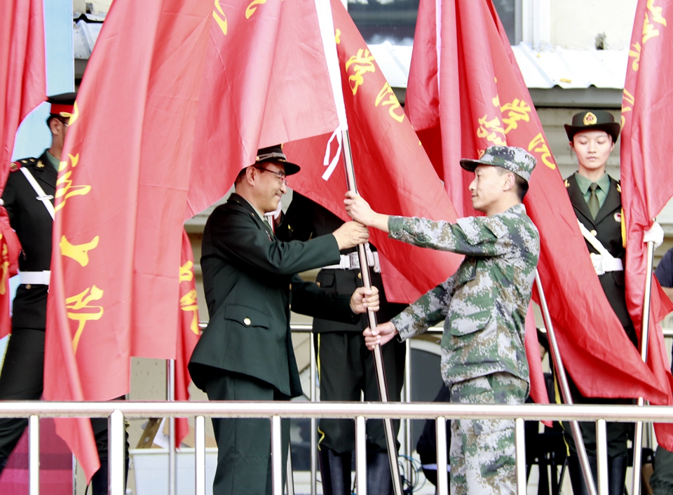 动员会上,中国人民解放军32110部队排长谢林涛上尉宣读了《黑河学院2019级学生军训计划》及《考核评比办法》;副参谋长郝德峰中校向黑河学院军训大队授旗,副校长许海深为各学院授黑河学院军训中队旗。