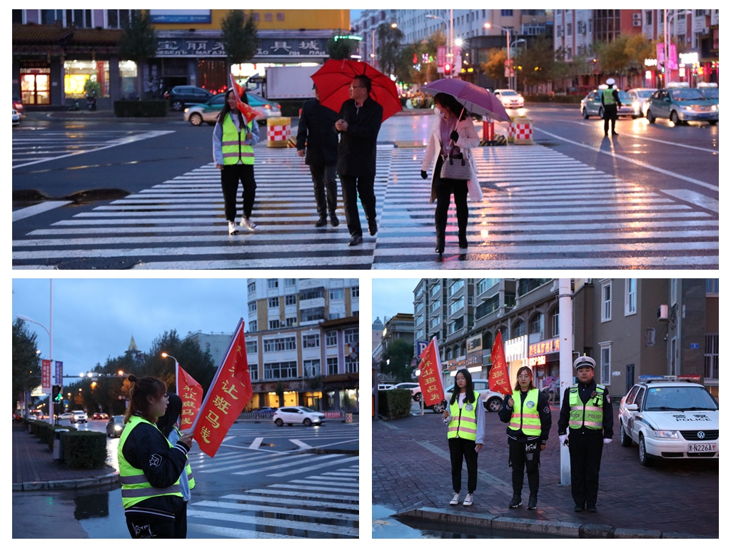 为促进黑河市创建全国文明城市,维护良好交通秩序,提升市民文明素质,黑河市开展了2019年“文明交通 你我同行”第三阶段文明交通志愿服务活动,我校作为参加活动的单位之一,共派出17个党总支、1个直属党支部70余名志愿者按照时间安排到指定地点开展志愿服务活动。活动期间,我校志愿者统一身穿红色马甲,手持引导旗帜,来到中央街与环城路交叉口路段,在清晨和傍晚交通高峰期协助交警维护秩序,耐心地向过往行人讲解交通知识,引导非机动车驾驶员文明通过马路,以积极饱满的精神状态、认真负责的工作态度赢得了交警和过往市民的好评,向黑河人民展示了我校师生的良好形象,为黑河市文明城市创建工作增添一道靓丽的风景线。