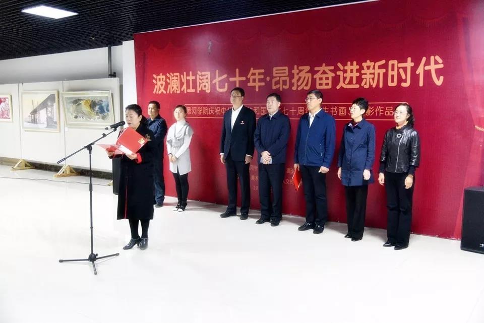党委副书记张焕强在致辞中介绍,本次书画摄影展共收到书画作品330件,摄影作品近380幅,经评审展出的200余件作品主题鲜明,内容丰富,立意深刻,形式多样,笔墨淋漓,突显了“不忘初心、牢记使命”教育主题,展现了我校师生优良的校风、教风、学风,一幅幅作品、一张张照片深情讴歌和衷心祝愿中华人民共和国成立70周年光辉历程和美好未来。