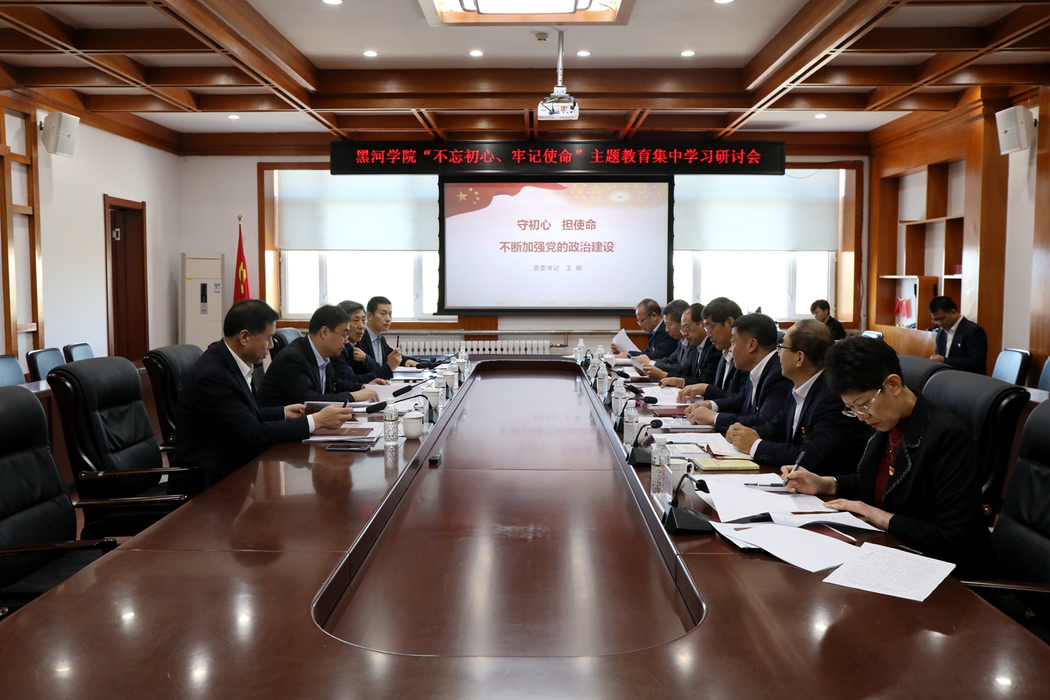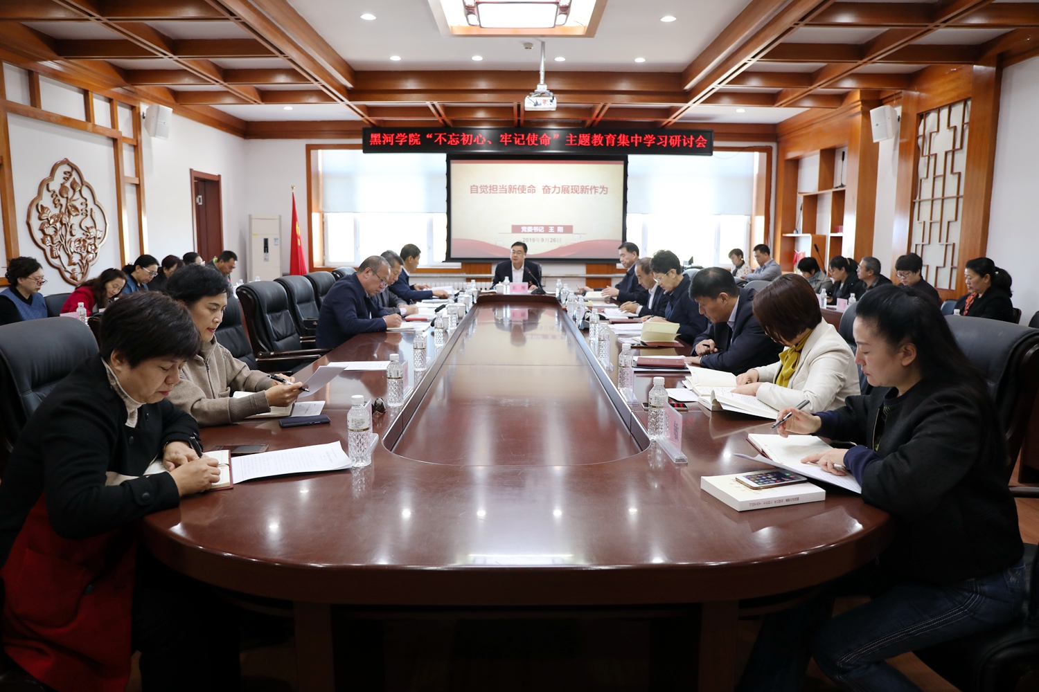 本网讯(记者 关月 摄影 宋均崇)按照《中共黑河学院委员会“不忘初心、牢记使命”主题教育集中学习研讨方案》安排,9月25—26日,我校在明德楼三楼会议室召开“不忘初心、牢记使命”主题教育集中研讨会。黑龙江省委“不忘初心、牢记使命”主题教育第六巡回指导组组长郭龙川、成员马强出席会议并提出明确要求,校党政领导班子成员、全校正处级干部参加会议。