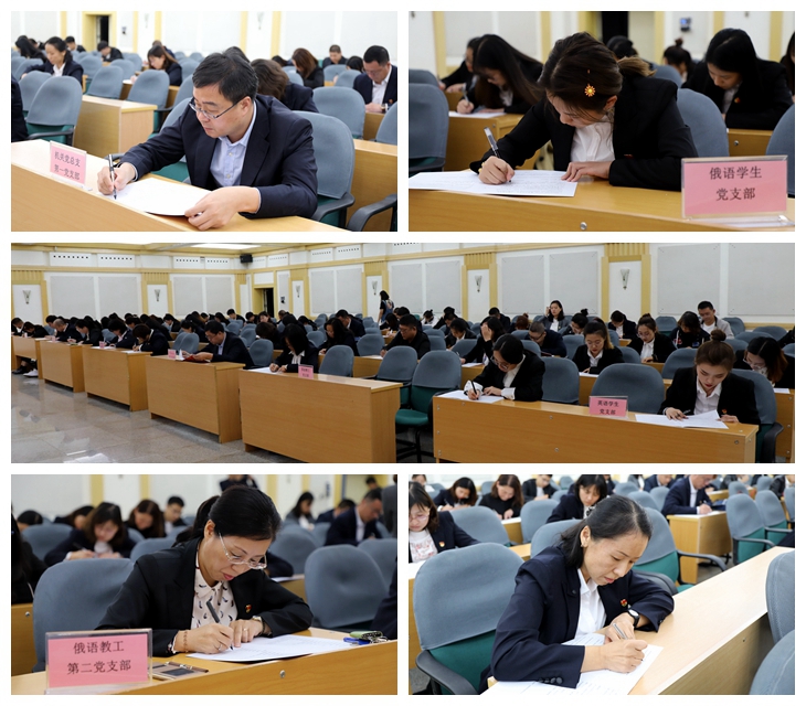本网讯(特约记者 张雪梅 摄影 李佳)为深入推进“不忘初心、牢记使命”主题教育活动,检验学习成效,外国语学院党总支、机关党总支第一党支部共同举办了“不忘初心、牢记使命”应知应会知识竞赛,近百名师生党员参加了此次竞赛。