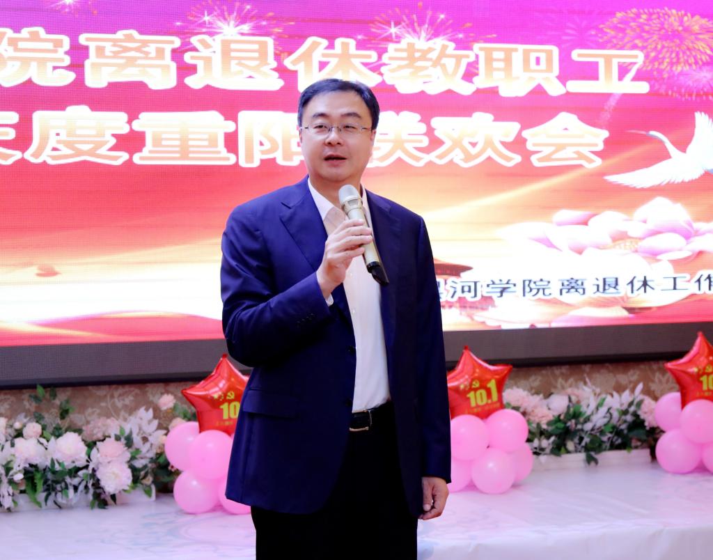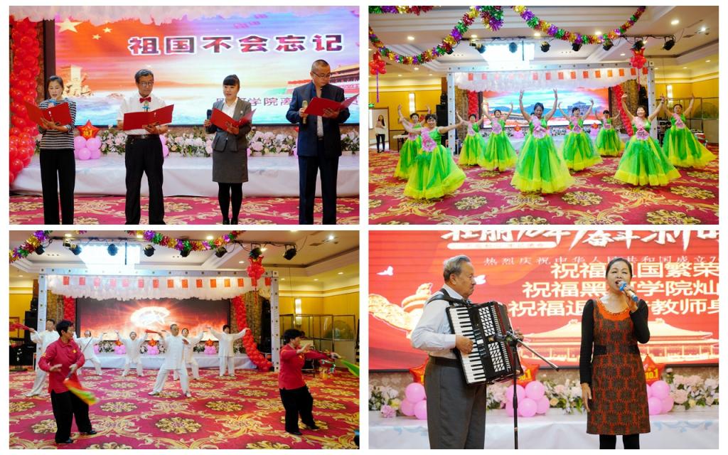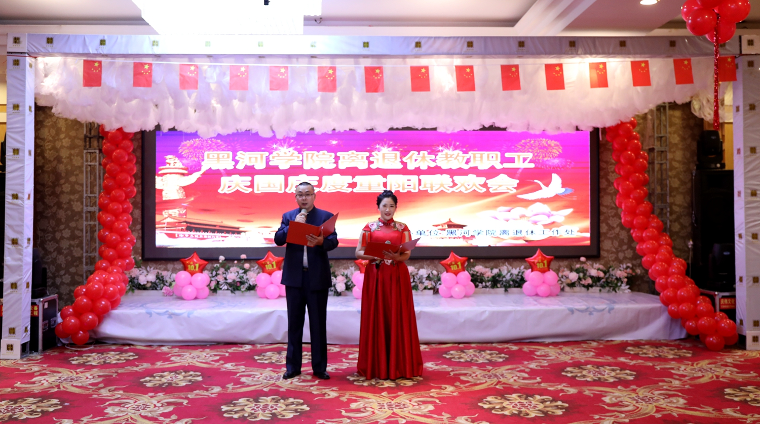 本网讯(记者 关月)金风送爽,丹桂飘香。9月30日,学校离退休教职工举行庆国庆度重阳联欢会。学校党委书记王刚、党委副书记张焕强、相关部门负责人与我校离退休教职工近百人齐聚黑河市国际饭店,载歌载舞,喜迎国庆,欢度重阳。