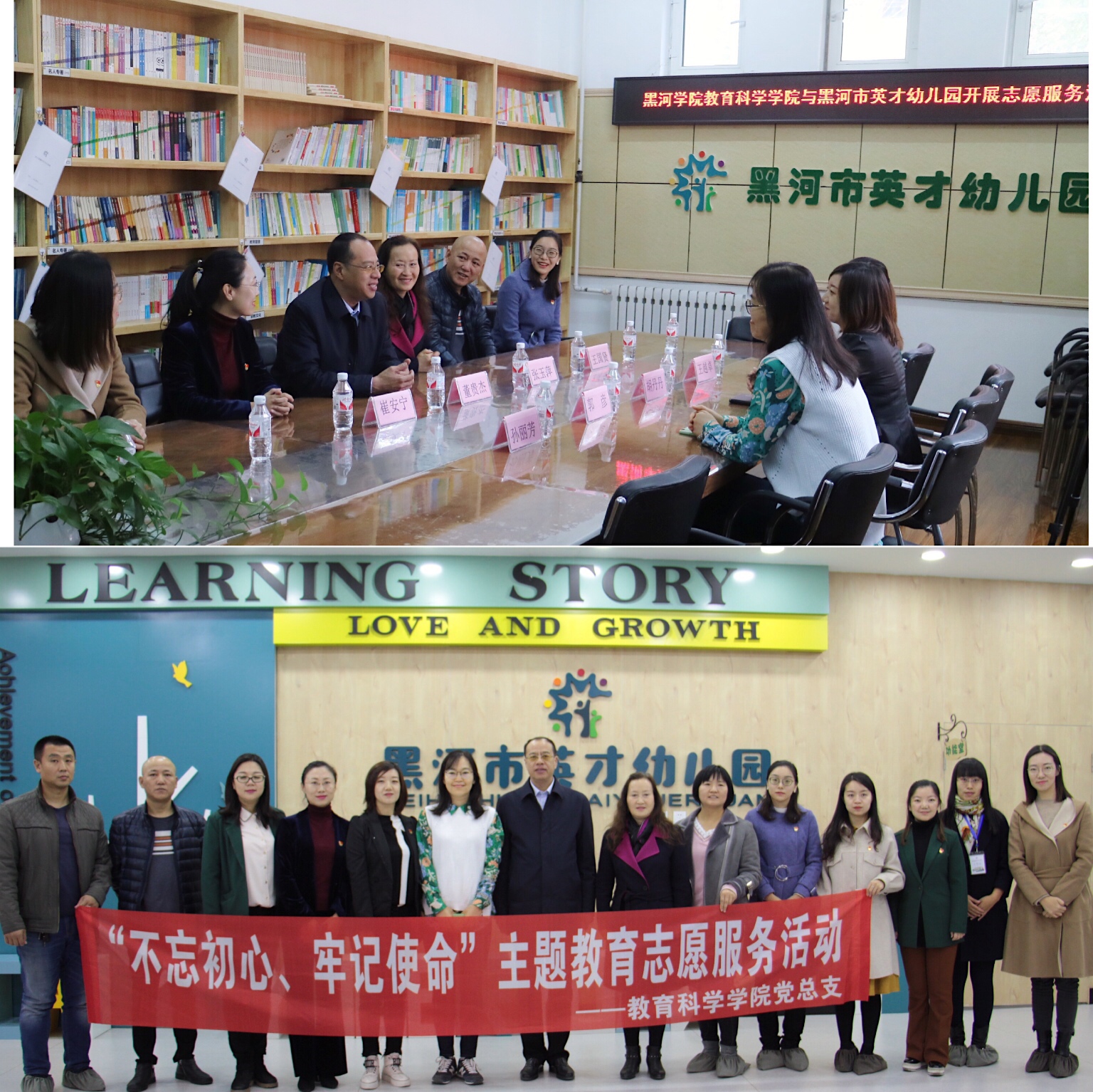 活动中,学校党委委员、纪委书记董贵杰表示,此次志愿服务活动是对“不忘初心、牢记使命”主题教育学习的有力践行,也是党员对全心全意为人民服务宗旨的有力践行。他希望以此次志愿服务活动为契机,在学校党委提出争创“校地合作”一流的良好局面下,教育科学学院要结合实际积极筹划,与黑河市英才幼儿园建立长效合作机制,逐步形成“院园共建”项目,真正做到互动互建、院园共促,为服务地方基础教育事业作出贡献。