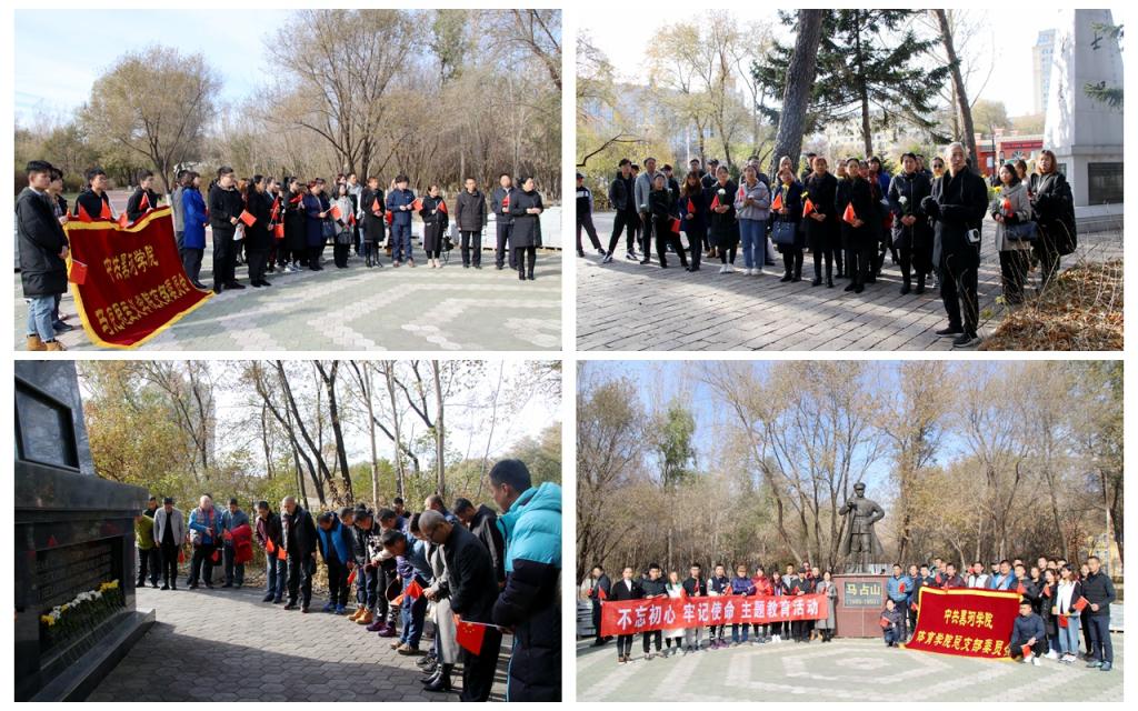 为贯彻落实习近平总书记在学校思想政治理论课教师座谈会上的重要讲话精神,进一步深入开展“不忘初心、牢记使命”主题教育活动,10月16日,马克思主义学院全体教师、部分学生代表,体育学院师生代表来到黑河市王肃公园开展“不忘初心、牢记使命”礼赞祖国系列活动之礼赞英雄现场教学活动,并为先烈献上鲜花,致敬先烈。马克思主义学院三位教师现场教学讲述了抗日英雄马占山的光荣事迹,苏联红军在黑河的红色历史,王肃烈士爱党爱国、血洒北疆的感人史实,师生们纷纷表示,通过此次活动更进一步的感受到了共产党人敢于斗争、不怕牺牲、艰苦奋斗、不断前进的精神风范,激励了大家坚定共产主义理想和为人民服务的信念,增强了政治责任感和历史使命感。