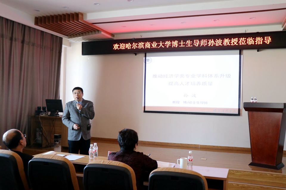 讲座中,孙波教授从人才培养是高校第一要务、经济学类专业及学科体系构架、现有经济类专业—学科体系逻辑关系、构建商务经济学全体系专业学科系统以及哈尔滨商业大学经济学类专业、学科申报案例五个方面进行了深入细致阐述,并从我校经济管理学院现有学科、专业发展现状入手,为专业内涵建设“问诊把脉”,就如何发展学科、专业提出了意见和建议。