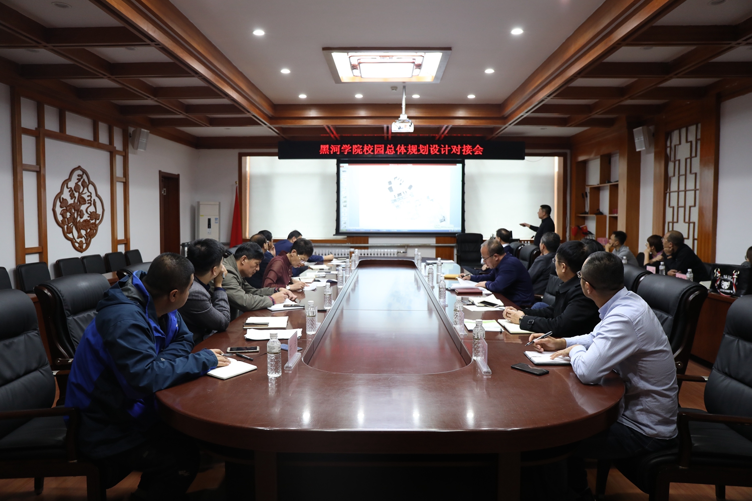 本网讯(记者 关月)按照学校重点工程项目工作安排,10月24日,学校在明德楼三楼会议室召开校园总体规划设计对接会,听取黑河学院校园总体布局规划概念方案设计工作进展情况汇报。党政班子成员,发展规划处、后勤管理处、财务处、审计处、各项目指挥部与承接单位哈尔滨工业大学建筑设计研究院相关负责人参加会议。