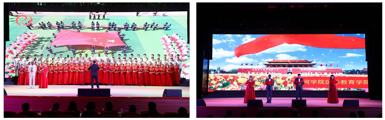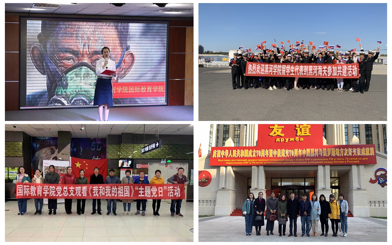 国际教育学院党总支把主题教育与庆祝中华人民共和国成立70周年同部署,深入开展爱国主义教育。中外师生们积极参与学校“波澜壮阔七十年 昂扬奋进新时代”诗歌朗诵比赛、演讲比赛和大合唱等系列活动,联合人文传媒学院党总支120余名师生共唱《在灿烂阳光下》《强军战歌》,共同讴歌祖国、赞美祖国;与黑河海关在旅检口岸结合“不忘初心、牢记使命”主题教育,举行了庆祝新中国成立70周年快闪活动,集中呈现海关职工和我校学子的精神风貌、青春风采,弘扬爱国主义精神的同时,向新中国成立70周年献礼;在主题党日活动中,组织全体党员教师集体观看爱国影片《我和我的祖国》,参观中俄黑龙江大桥和庆祝中华人民共和国成立70周年暨中俄建交70周年中国黑河与俄罗斯地方友好交往成就展,让全院教师更深刻生动地感受个人和国家之间的紧密联系,坚定大家育人戍疆、走边疆高校特色发展之路的信心和决心。