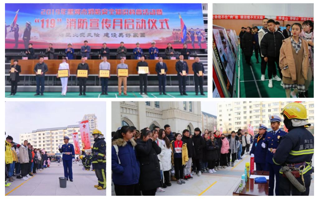 11月9日上午,学校积极组织10个学院300余名师生参加了由黑河市消防救援支队在市体育馆举行的消防安全知识科普大型公益活动暨“防范火灾风险、建设美好家园”119消防宣传月启动仪式。活动现场,师生们参观了消防改革转制一周年图片展、火灾警示图片展、消防宣传科技体验区、五类消防常识科普区。黑河市消防救援支队支队长徐明军同志宣读了2019年全市热心消防公益事业先进集体和先进个人表彰决定,我校荣获全市热心消防公益事业先进集体和先进个人荣誉称号。