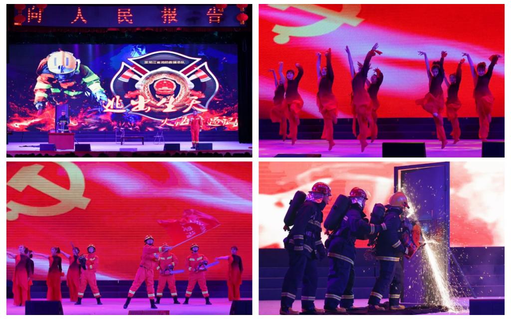 11月8日,学校与黑河市消防救援支队联合举办的“向人民报告”消防文艺演出在明德楼礼堂举行。市委常委、宣传部部长狄恒,市政府副市长丁兆禄,市消防救援支队支队长徐明军,我校副校长车永宏与师生代表400余人观看了演出。演出以合唱、科普舞台剧、诗朗诵、歌伴舞等形式,生动呈现了消防救援支队官兵们忠实践行习总书记“对党忠诚、纪律严明、赴汤蹈火、竭诚为民”重要训词精神,不忘初心、牢记使命,扛旗奔跑、换羽新生的感人画面和喜人成果。我校音乐学院师生表演的歌曲《我和我的祖国》、歌伴舞《共圆中国梦》、器乐表演《映山红》、科普舞台剧《逃出生天—火场奇遇记》等节目精彩纷呈,赢得了在场观众的阵阵掌声。整场演出使全国第28届119消防宣传日主题“防范火灾风险、建设美好家园”的理念深入人心,对进一步提高师生消防安全意识起到了积极的促进作用。