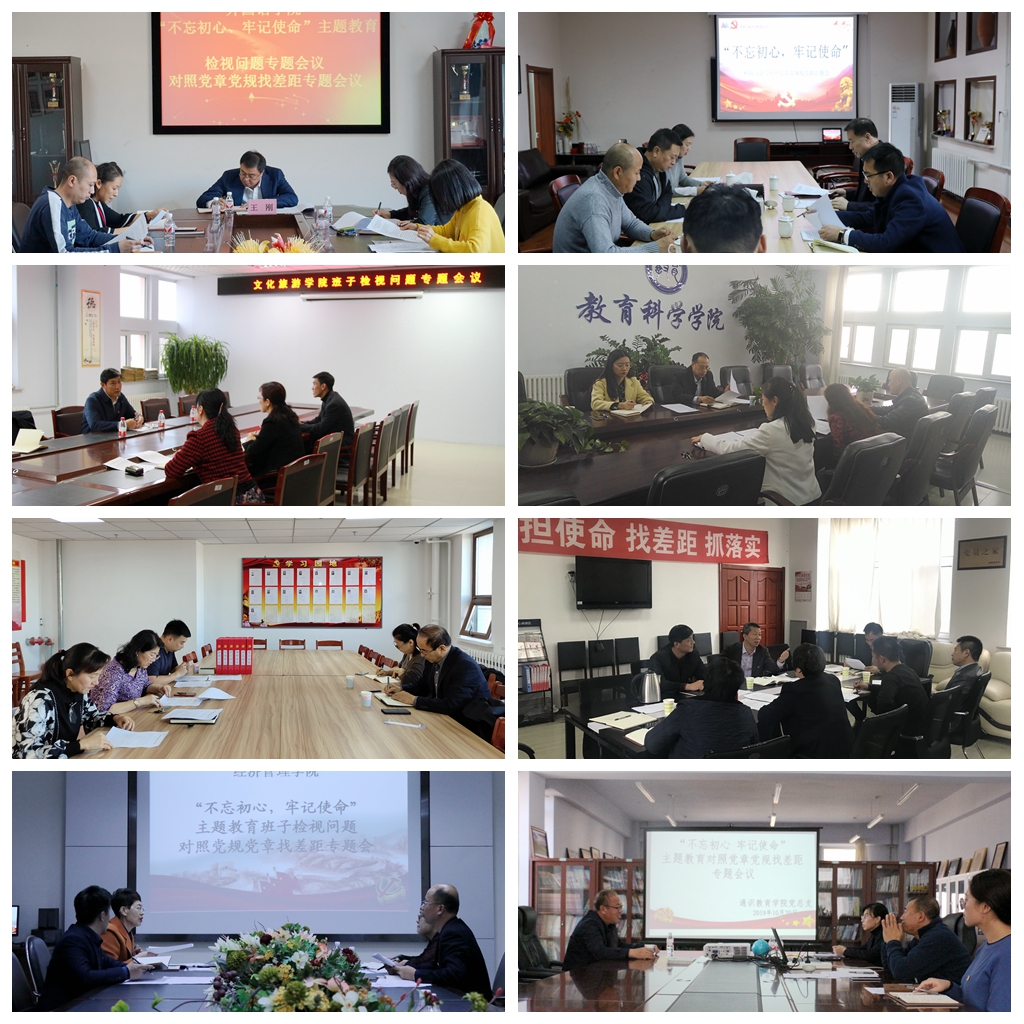 本网讯(记者 赵宇)近日,中央“不忘初心、牢记使命”主题教育领导小组印发《关于在“不忘初心、牢记使命”主题教育中对照党章党规找差距的工作方案》,要求各地区各部门各单位在主题教育中对照党章党规,以正视问题的自觉和刀刃向内的勇气,逐一对照、全面查找各种违背初心和使命的问题,真刀真枪解决问题。学校于10月23日召开领导班子检视问题及对照党章党规找差距专题会,各党总支、直属党支部分别按照学校党委“不忘初心、牢记使命”主题教育工作部署,召开对照党章党规找差距专题会议, 对照《中国共产党章程》《关于新形势下党内政治生活的若干准则》《中国共产党纪律处分条例》自我检视、找差距,查摆自身存在的问题和不足。