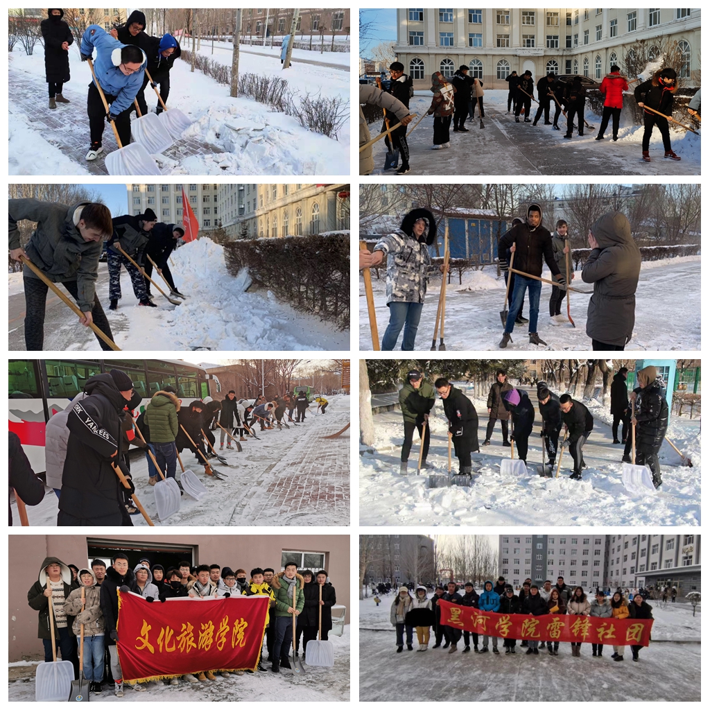 为了尽快全面恢复学校各条道路畅通,缓解学校后勤保洁服务人员的工作压力,在学校爱卫办的精心组织下,各学院、职能部门、学生志愿组织自发组织起来,开展清扫道路积雪志愿活动,用自己的实际行动践行着“爱校荣校”的精神。中外师生们在酷寒中挥舞着铁锹、扫帚,将道路上的积雪、冰层一一清除,同时,保洁服务公司利用鼓风机将职工车上积雪吹除,最大限度的减少因雨雪天气对道路安全带来的不便和影响,保障师生出行安全。