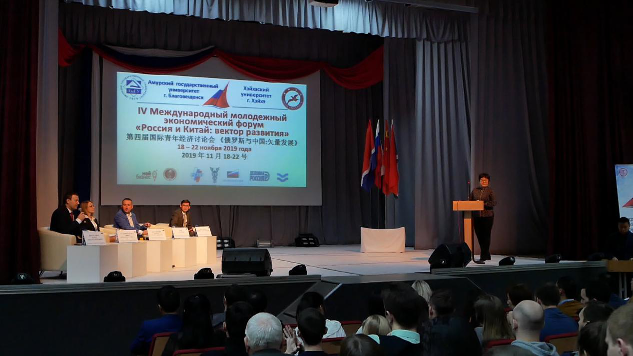 11月18日,第四届国际青年经济论坛开幕式在俄罗斯阿穆尔国立大学举行。我校经济管理学院院长谢慧代表学校在开幕式致辞指出第四届中俄青年经济论坛作为黑河学院与阿穆尔国立大学签署科研合作协议后的又一重要合作,必将进一步夯实两校间的合作,提升两校友谊。