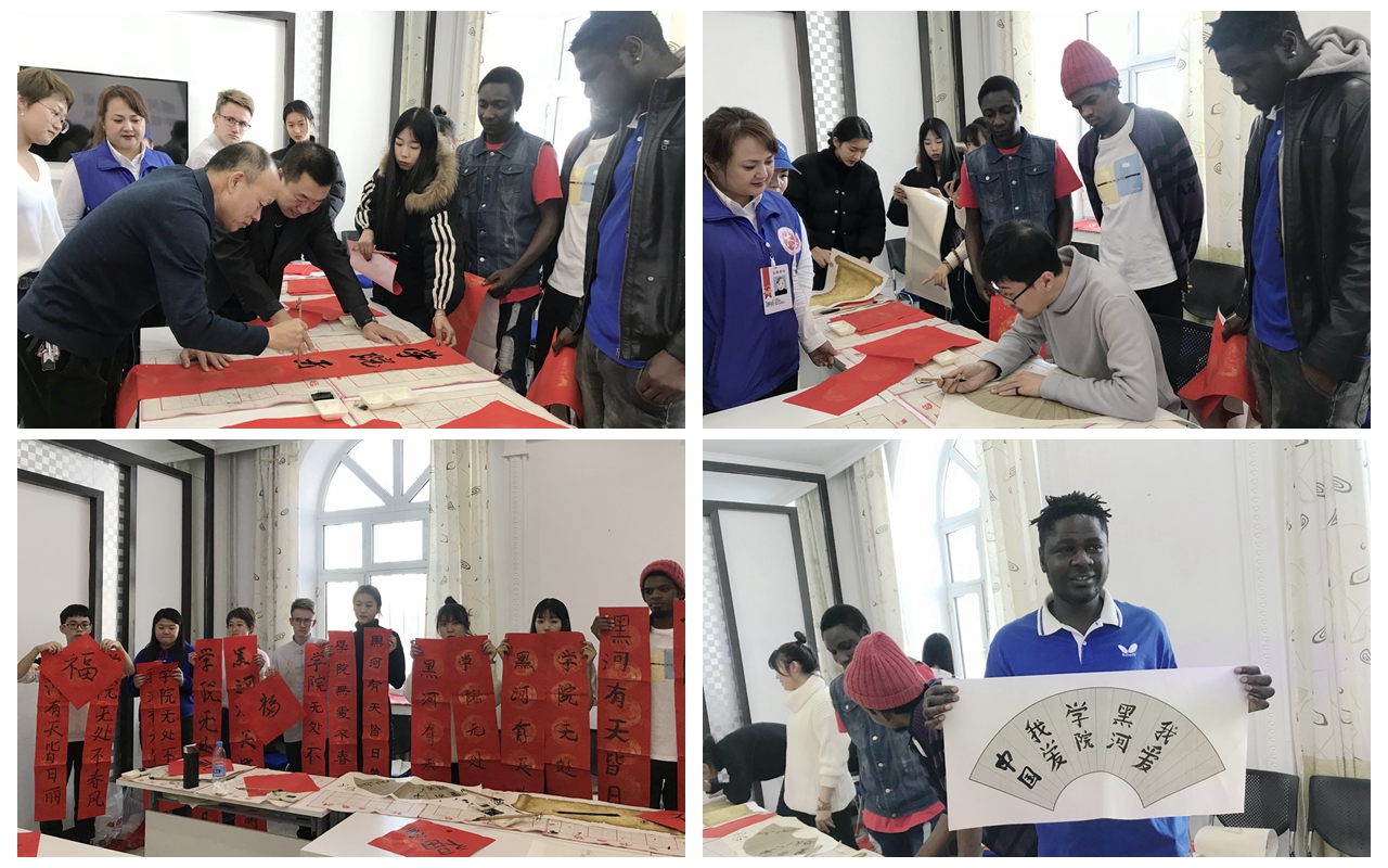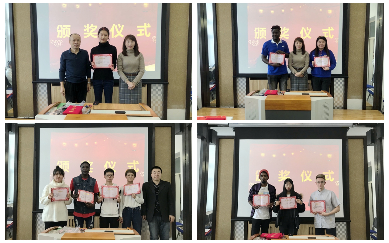本次比赛以“写好方块字,走遍大中国”为宗旨,是一次在不同语境下共同书写汉字书法的活动,同时也是传递和平与友谊的文化交流活动。在11月28日下午举办的颁奖典礼上,美术与设计学院的高国华老师声情并茂地给留学生上了一堂精彩的书法艺课,深入浅出地讲解了写好书法的技巧,并现场手把手地教留学生们用毛笔书写汉字,感受传统书法和绘画的魅力;文化旅游学院的杨正阳老师亲手传授了学生们中国扇字画的创作技艺。会上,美术与设计学院、文化旅游学院和国际教育学院的教师们分别为获奖学生颁奖。