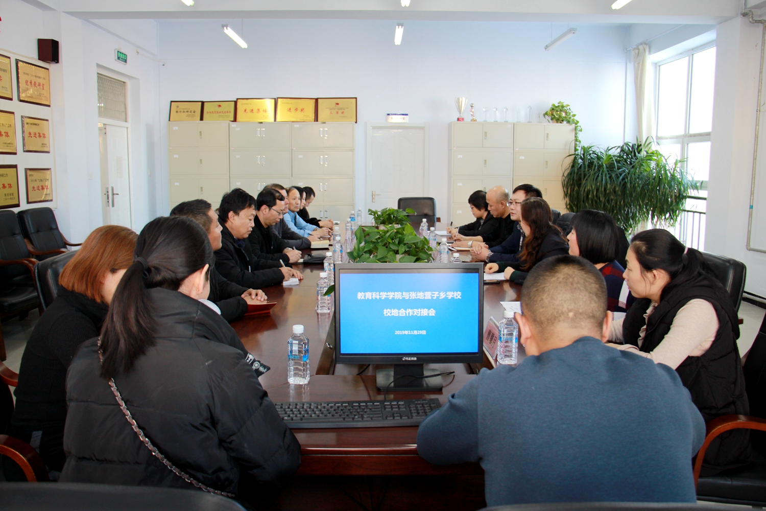 本网讯(特约记者 曹馨月 摄影 陈丹)11月29日下午,学校在求知楼A501室举行教育科学学院与张地营子乡学校校地合作对接会。张地营子乡学校校长张辉一行9人与我校教务处处长高孝成、教育科学学院相关负责教师参加对接会。会议由教育科学学院院长张玉萍主持。