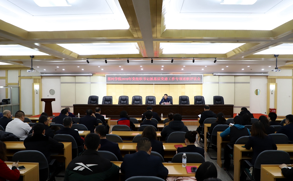 本网讯(记者 关月)为进一步加强全面从严治党向基层延伸,提升学校基层党建工作科学化、制度化、规范化水平,12月18日,学校在明德楼五楼多功能厅召开2019年党组织书记抓基层党建工作专项述职评议会。黑河市委两新工委副书记王贯中、市委组织部公务员二科主任科员张越,学校党委班子成员、党群部门工作人员、各党总支委员、党支部书记、全校辅导员100余人参会并进行现场测评。党委副书记张焕强主持会议。